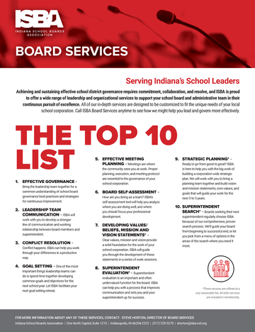 School boards today face significant challenges. ISBA hopes to be a true partner with you, as you work and lead in your community and across the state. Find the board services you need below.